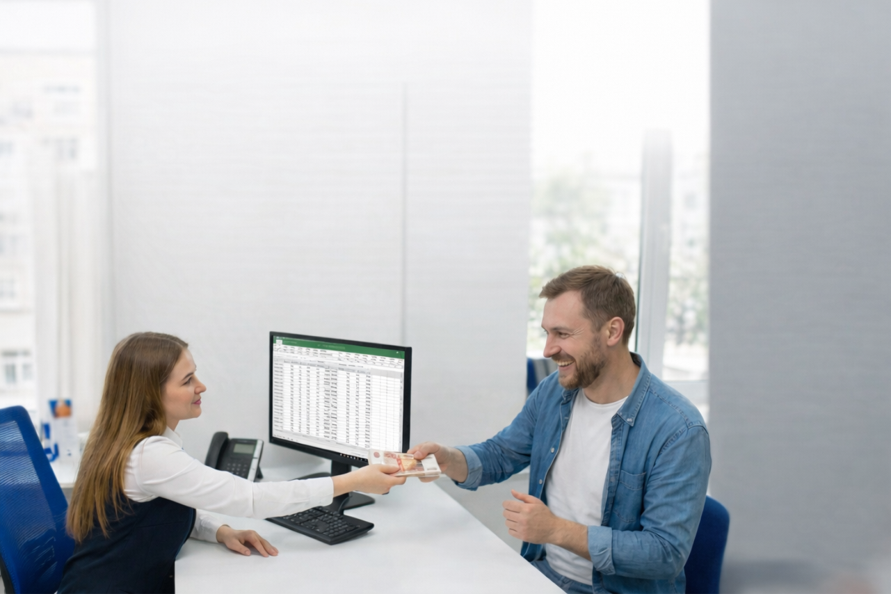 После подписания вы сразу получаете сумму удобным для вас способом: наличными или переводом на счет. Деньги будут у вас буквально через несколько минут.